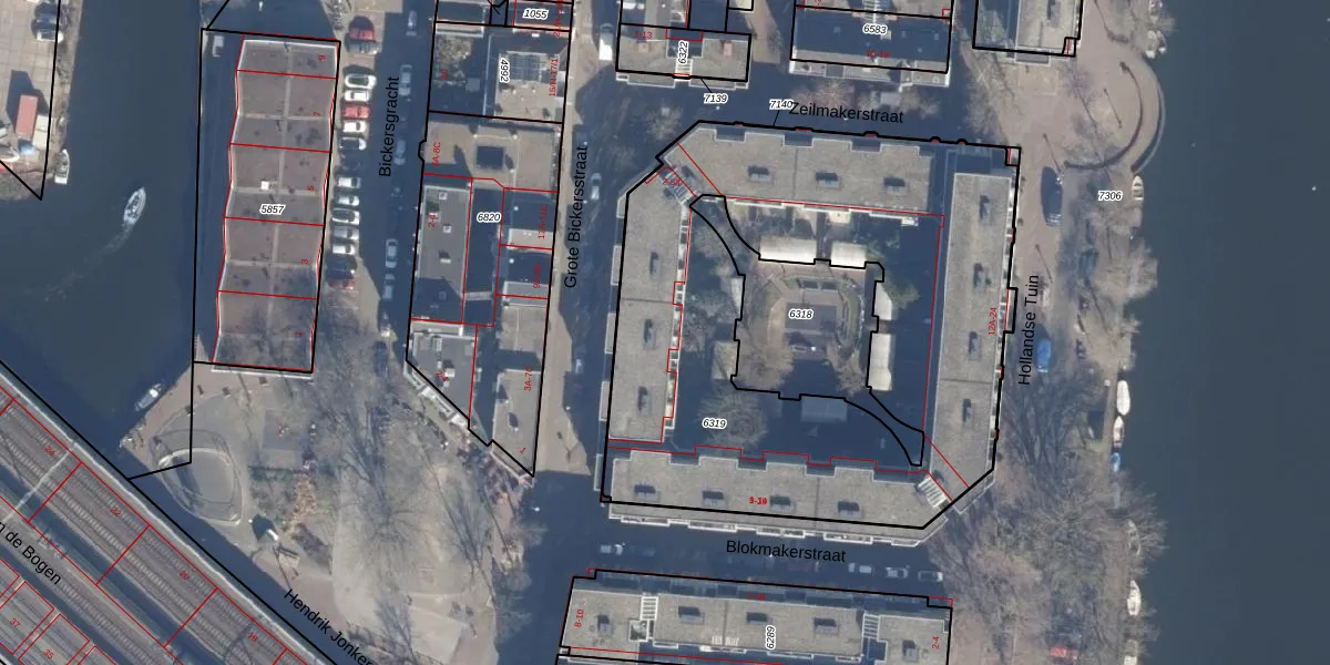 Het adres is gelegen op perceel 6319 in de sectie M en de kadastrale gemeente Amsterdam. De kadastrale aanduiding is aldus ASD09-M-6319. De oppervlakte van het perceel is 2790 m². Dat is groter dan gemiddeld in Amsterdam, waar de gemiddelde perceeloppervlakte op 550,83 m² ligt. De grootste perceeloppervlakte in de kadastrale gemeente is 14,3 ha. De kleinste oppervlakte bedraagt 1 m². Op het perceel zijn 68 adressen aanwezig. De huidige grenzen van het perceel zijn digitaal in de Basisregistratie Kadaster (BRK) geregistreerd op 30-06-2009.