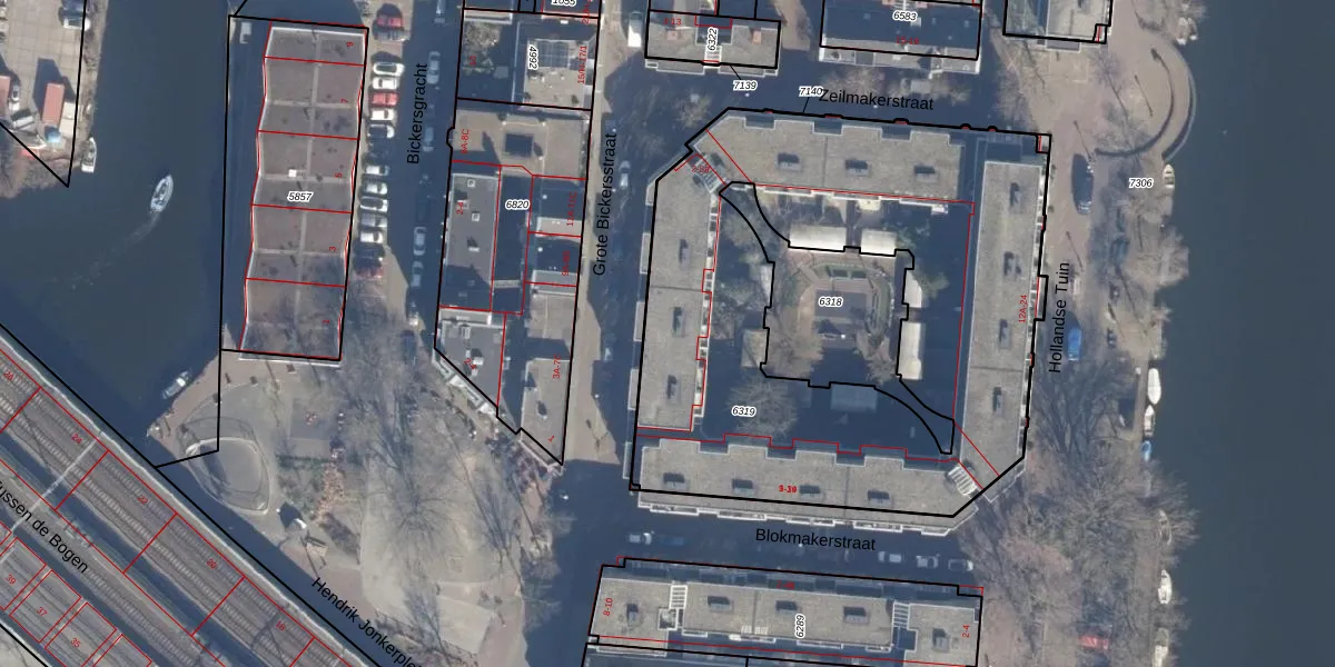 Het perceel waarop Grote Bickersstraat 18 staat heeft een oppervlakte van 2790 m². Dit is een zeer groot perceel. De perceeloppervlakte wordt geregistreerd door het Kadaster. Gedetailleerde informatie over de maten van dit perceel kunt u vinden in het rapport Kadastrale kaart met maatvoering van Grote Bickersstraat 18.