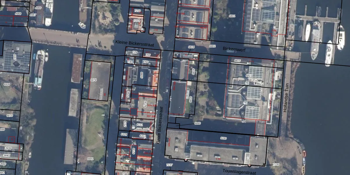 Het perceel waarop Grote Bickersstraat 50-A staat heeft een oppervlakte van 325 m². Dit is een groot perceel. De perceeloppervlakte wordt geregistreerd door het Kadaster. Gedetailleerde informatie over de maten van dit perceel kunt u vinden in het rapport Kadastrale kaart met maatvoering van Grote Bickersstraat 50-A.