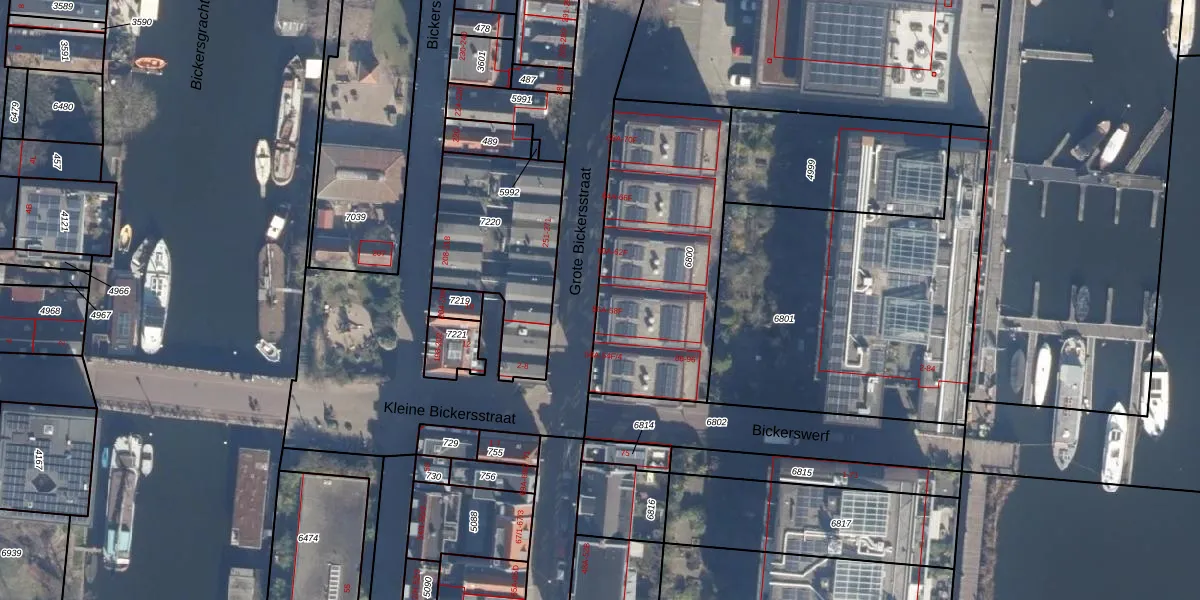 Het perceel waarop Grote Bickersstraat 58-A staat heeft een oppervlakte van 960 m². Dit is een groot perceel. De perceeloppervlakte wordt geregistreerd door het Kadaster. Gedetailleerde informatie over de maten van dit perceel kunt u vinden in het rapport Kadastrale kaart met maatvoering van Grote Bickersstraat 58-A.