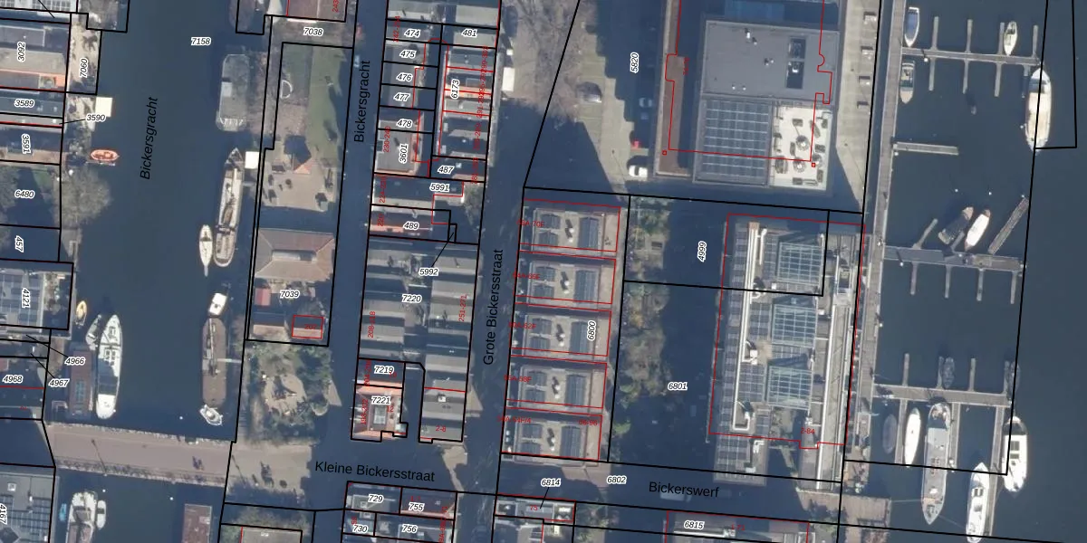 Het perceel waarop Grote Bickersstraat 66-D staat heeft een oppervlakte van 960 m². Dit is een groot perceel. De perceeloppervlakte wordt geregistreerd door het Kadaster. Gedetailleerde informatie over de maten van dit perceel kunt u vinden in het rapport Kadastrale kaart met maatvoering van Grote Bickersstraat 66-D.