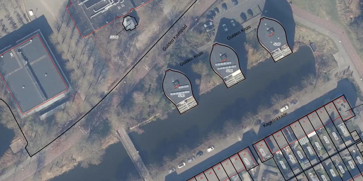 Gulden Kruis 35 is gelegen op kadastraal perceel WPK02L5243. Deze kadastrale aanduiding is uniek en wordt gebruikt door het Kadaster om eigendomsrechten en andere zakelijke rechten vast te leggen. Het perceel maakt onderdeel uit van de kadastrale gemeente Weesperkarspel.