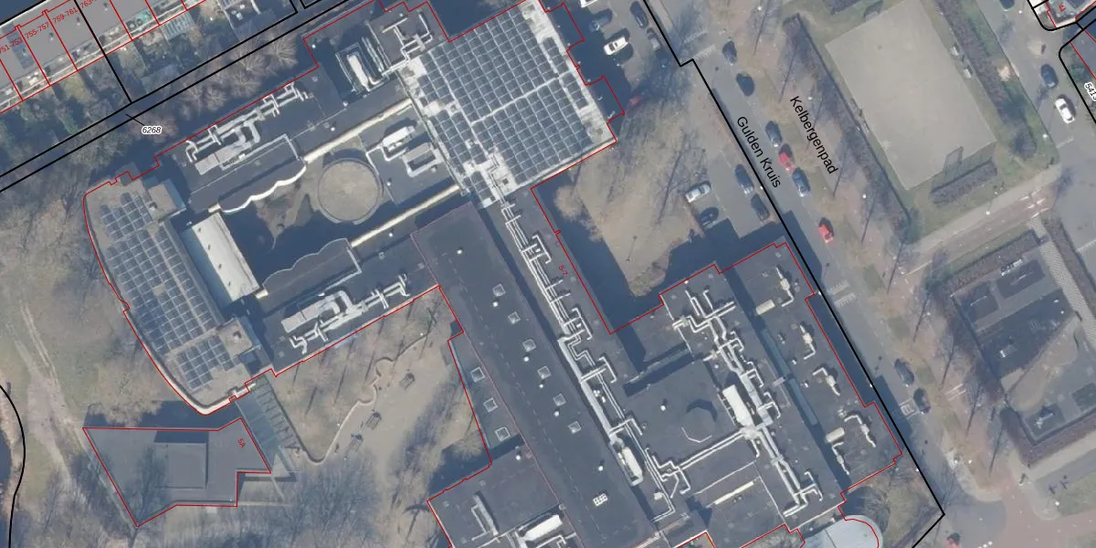 Het perceel waarop Gulden Kruis 5 staat heeft een oppervlakte van 2,4 ha. Dit is een zeer groot perceel. De perceeloppervlakte wordt geregistreerd door het Kadaster. Gedetailleerde informatie over de maten van dit perceel kunt u vinden in het rapport Kadastrale kaart met maatvoering van Gulden Kruis 5.