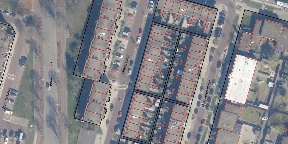 Het perceel waarop Gutserstraat 13 staat heeft een oppervlakte van 950 m². Dit is een groot perceel. De perceeloppervlakte wordt geregistreerd door het Kadaster. Gedetailleerde informatie over de maten van dit perceel kunt u vinden in het rapport Kadastrale kaart met maatvoering van Gutserstraat 13.