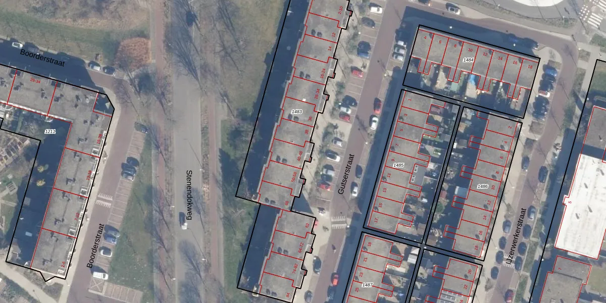Gutserstraat 40 is gelegen op kadastraal perceel ASD28AH1483. Deze kadastrale aanduiding is uniek en wordt gebruikt door het Kadaster om eigendomsrechten en andere zakelijke rechten vast te leggen. Het perceel maakt onderdeel uit van de kadastrale gemeente Amsterdam.