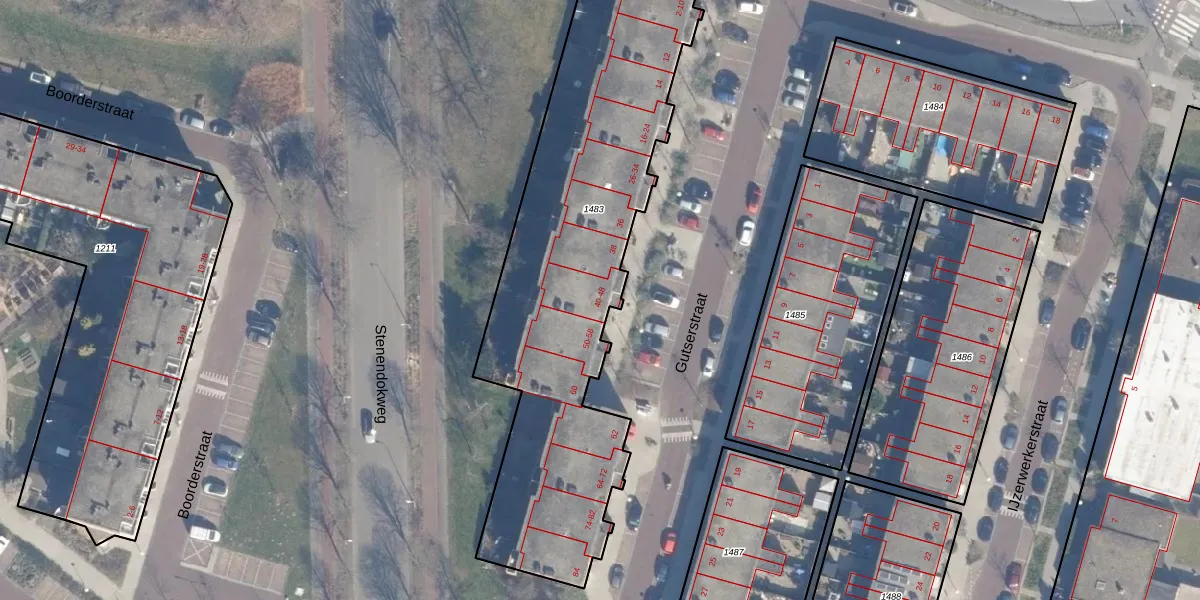 Het perceel waarop Gutserstraat 44 staat heeft een oppervlakte van 1975 m². Dit is een zeer groot perceel. De perceeloppervlakte wordt geregistreerd door het Kadaster. Gedetailleerde informatie over de maten van dit perceel kunt u vinden in het rapport Kadastrale kaart met maatvoering van Gutserstraat 44.