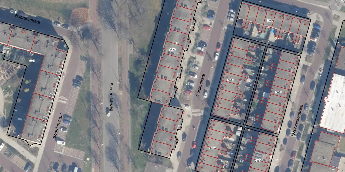 Het perceel waarop Gutserstraat 52 staat heeft een oppervlakte van 1975 m². Dit is een zeer groot perceel. De perceeloppervlakte wordt geregistreerd door het Kadaster. Gedetailleerde informatie over de maten van dit perceel kunt u vinden in het rapport Kadastrale kaart met maatvoering van Gutserstraat 52.