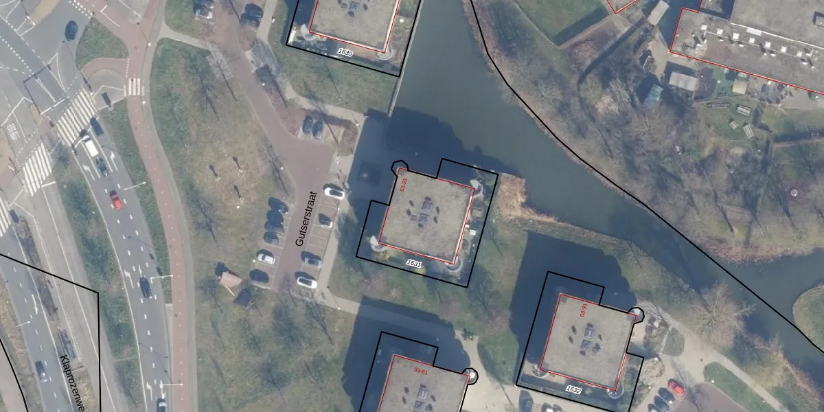 Het perceel waarop Gutserstraat 65 staat heeft een oppervlakte van 695 m². Dit is een groot perceel. De perceeloppervlakte wordt geregistreerd door het Kadaster. Gedetailleerde informatie over de maten van dit perceel kunt u vinden in het rapport Kadastrale kaart met maatvoering van Gutserstraat 65.
