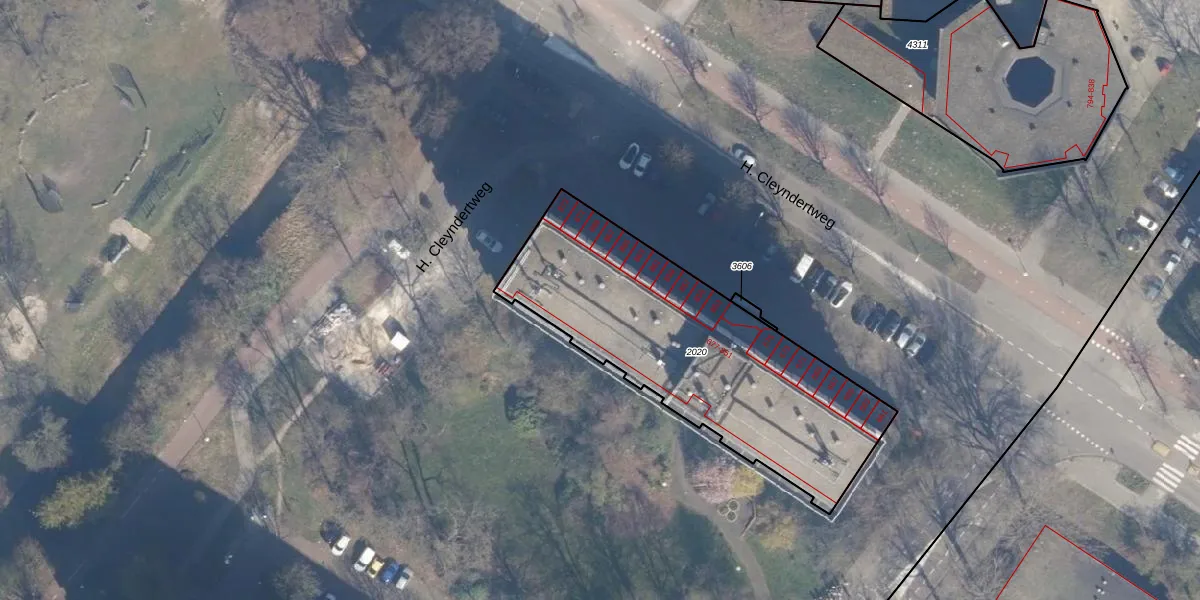H. Cleyndertweg 821 is gelegen op kadastraal perceel ASD31AL2020. Deze kadastrale aanduiding is uniek en wordt gebruikt door het Kadaster om eigendomsrechten en andere zakelijke rechten vast te leggen. Het perceel maakt onderdeel uit van de kadastrale gemeente Amsterdam.