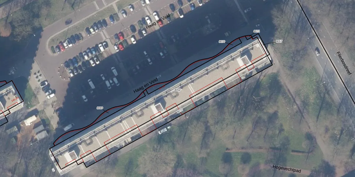 Het perceel waarop Haag en Veld 52 staat heeft een oppervlakte van 1783 m². Dit is een zeer groot perceel. De perceeloppervlakte wordt geregistreerd door het Kadaster. Gedetailleerde informatie over de maten van dit perceel kunt u vinden in het rapport Kadastrale kaart met maatvoering van Haag en Veld 52.