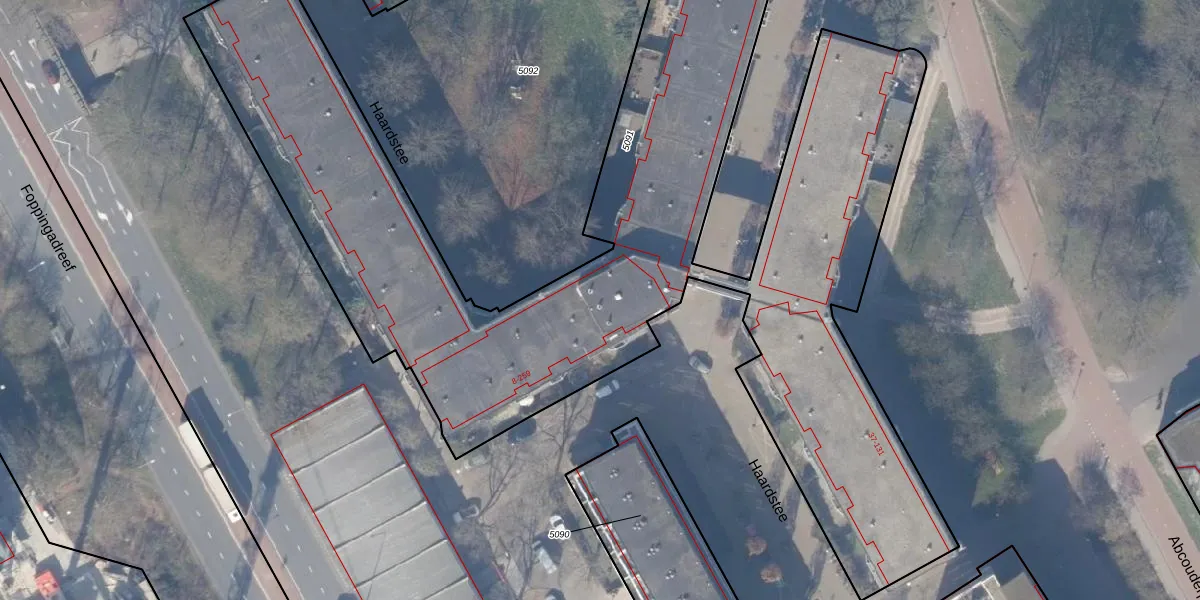 Het perceel waarop Haardstee 103 staat heeft een oppervlakte van 6292 m². Dit is een zeer groot perceel. De perceeloppervlakte wordt geregistreerd door het Kadaster. Gedetailleerde informatie over de maten van dit perceel kunt u vinden in het rapport Kadastrale kaart met maatvoering van Haardstee 103.