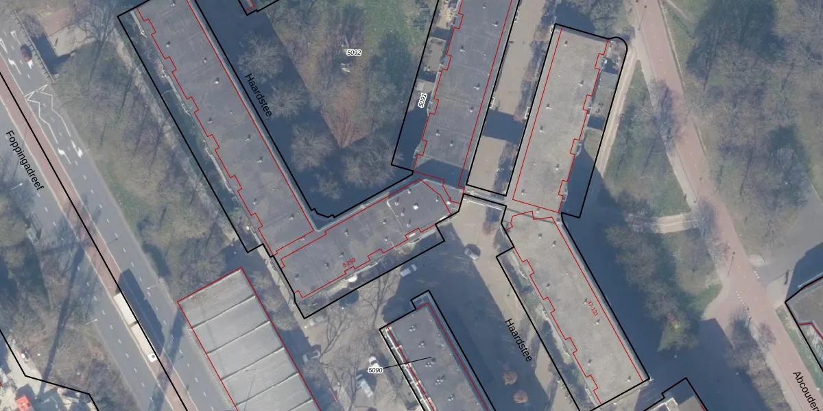 Het perceel waarop Haardstee 105 staat heeft een oppervlakte van 6292 m². Dit is een zeer groot perceel. De perceeloppervlakte wordt geregistreerd door het Kadaster. Gedetailleerde informatie over de maten van dit perceel kunt u vinden in het rapport Kadastrale kaart met maatvoering van Haardstee 105.