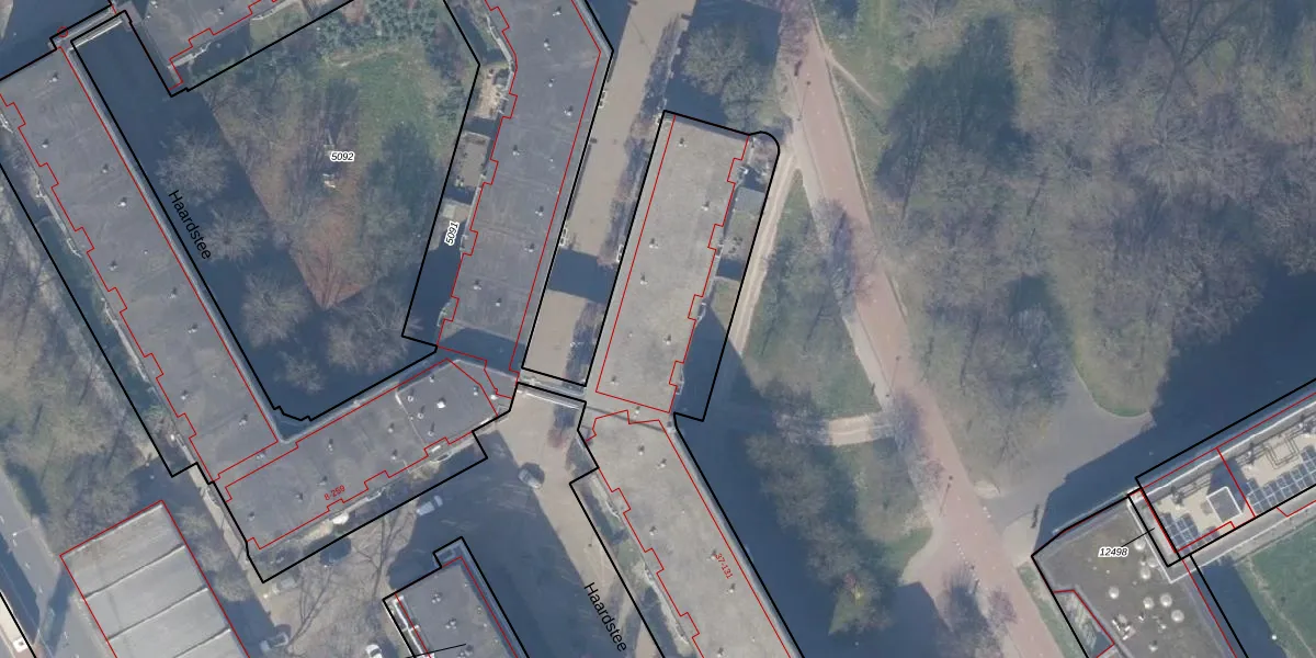 Het perceel waarop Haardstee 127 staat heeft een oppervlakte van 6292 m². Dit is een zeer groot perceel. De perceeloppervlakte wordt geregistreerd door het Kadaster. Gedetailleerde informatie over de maten van dit perceel kunt u vinden in het rapport Kadastrale kaart met maatvoering van Haardstee 127.
