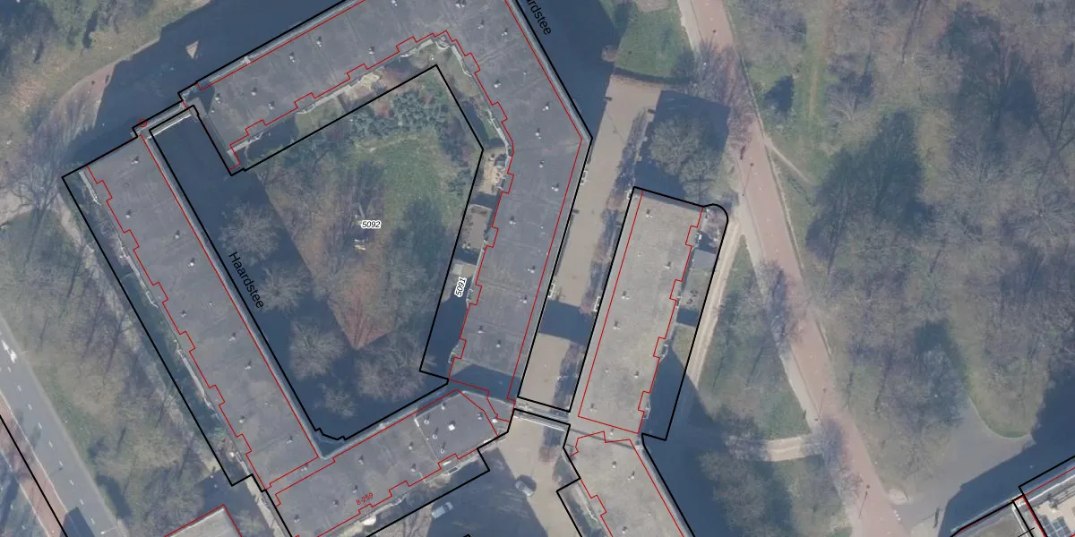 Het perceel waarop Haardstee 136 staat heeft een oppervlakte van 6292 m². Dit is een zeer groot perceel. De perceeloppervlakte wordt geregistreerd door het Kadaster. Gedetailleerde informatie over de maten van dit perceel kunt u vinden in het rapport Kadastrale kaart met maatvoering van Haardstee 136.