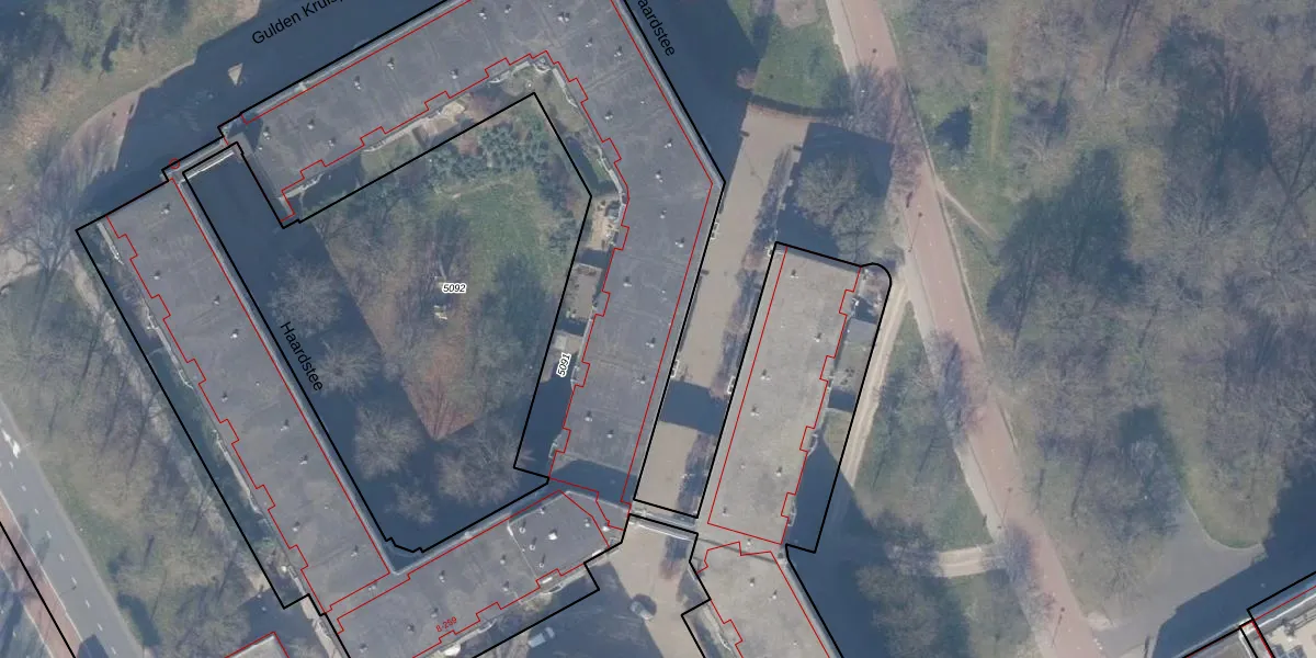 Het perceel waarop Haardstee 137 staat heeft een oppervlakte van 6292 m². Dit is een zeer groot perceel. De perceeloppervlakte wordt geregistreerd door het Kadaster. Gedetailleerde informatie over de maten van dit perceel kunt u vinden in het rapport Kadastrale kaart met maatvoering van Haardstee 137.