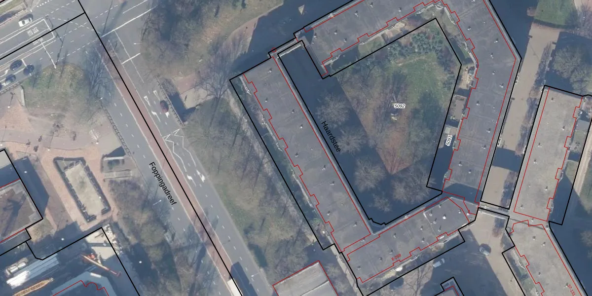 Het perceel waarop Haardstee 210 staat heeft een oppervlakte van 6292 m². Dit is een zeer groot perceel. De perceeloppervlakte wordt geregistreerd door het Kadaster. Gedetailleerde informatie over de maten van dit perceel kunt u vinden in het rapport Kadastrale kaart met maatvoering van Haardstee 210.