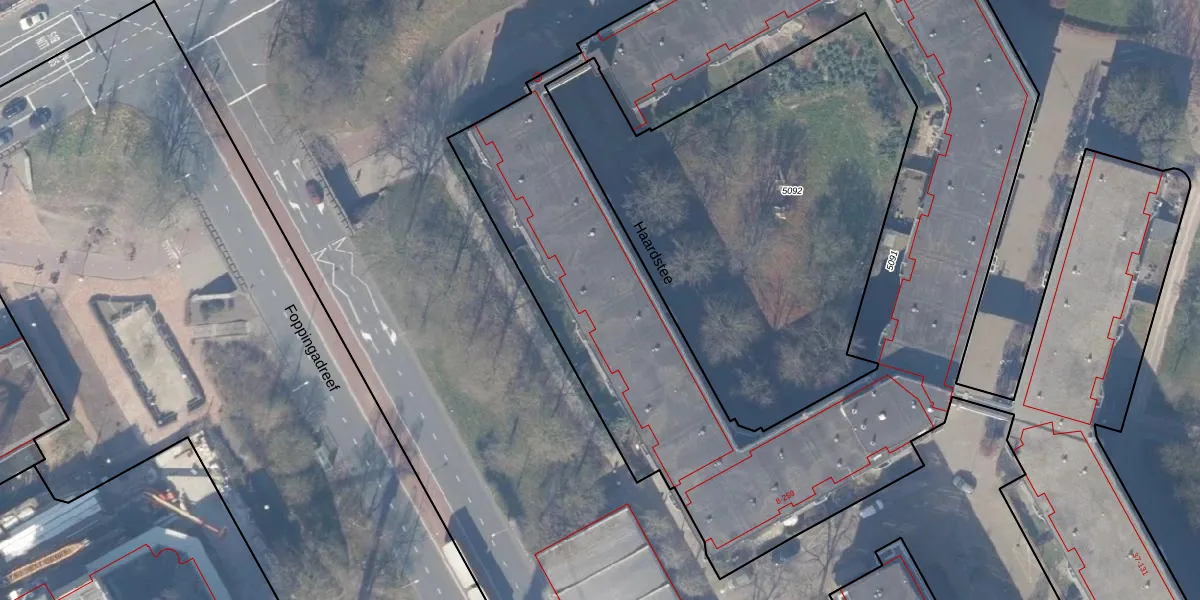 Het perceel waarop Haardstee 215 staat heeft een oppervlakte van 6292 m². Dit is een zeer groot perceel. De perceeloppervlakte wordt geregistreerd door het Kadaster. Gedetailleerde informatie over de maten van dit perceel kunt u vinden in het rapport Kadastrale kaart met maatvoering van Haardstee 215.