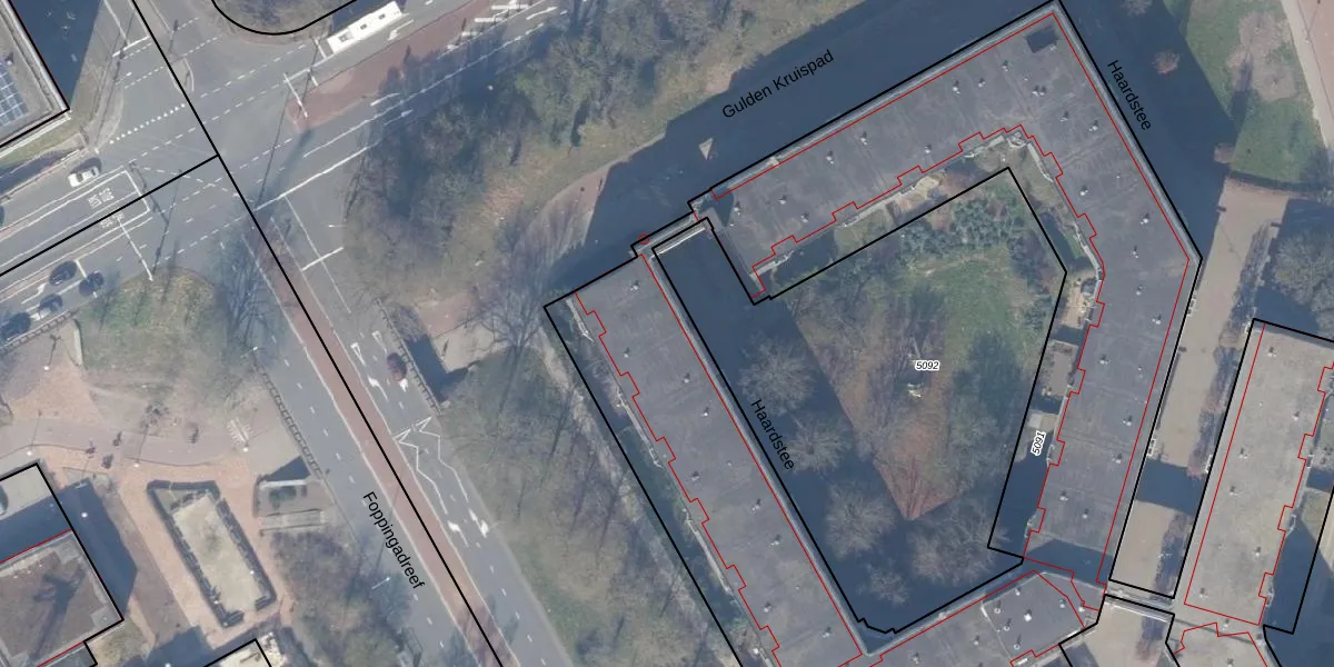 Het perceel waarop Haardstee 223 staat heeft een oppervlakte van 6292 m². Dit is een zeer groot perceel. De perceeloppervlakte wordt geregistreerd door het Kadaster. Gedetailleerde informatie over de maten van dit perceel kunt u vinden in het rapport Kadastrale kaart met maatvoering van Haardstee 223.
