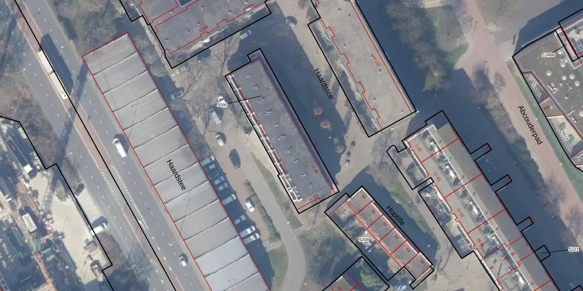 Het perceel waarop Haardstee 23 staat heeft een oppervlakte van 832 m². Dit is een groot perceel. De perceeloppervlakte wordt geregistreerd door het Kadaster. Gedetailleerde informatie over de maten van dit perceel kunt u vinden in het rapport Kadastrale kaart met maatvoering van Haardstee 23.