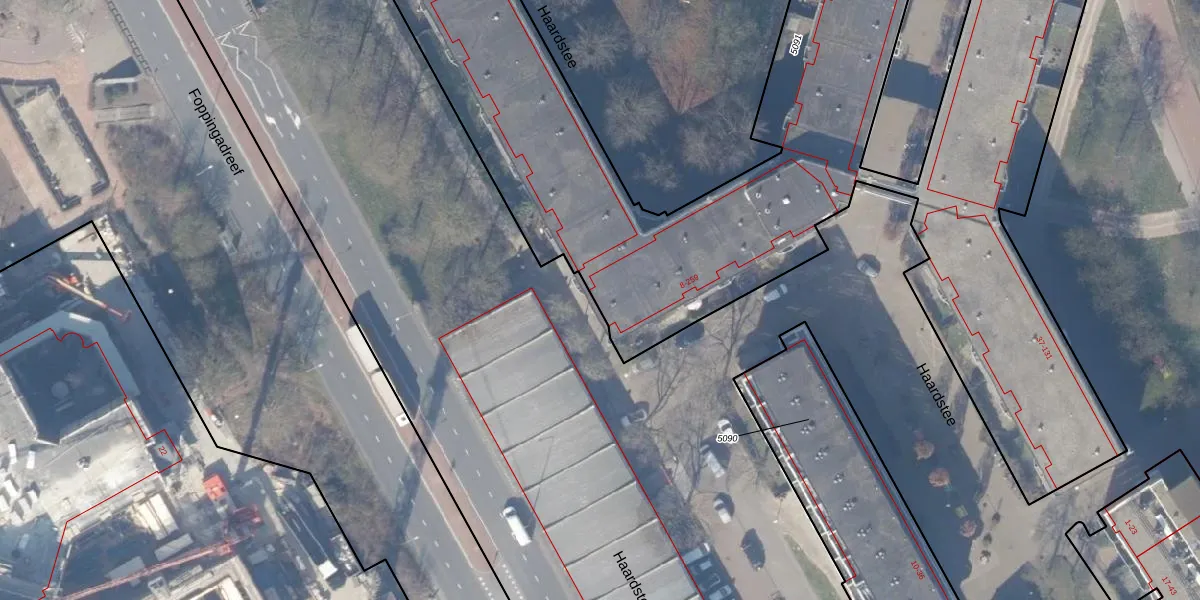 Het perceel waarop Haardstee 251 staat heeft een oppervlakte van 6292 m². Dit is een zeer groot perceel. De perceeloppervlakte wordt geregistreerd door het Kadaster. Gedetailleerde informatie over de maten van dit perceel kunt u vinden in het rapport Kadastrale kaart met maatvoering van Haardstee 251.