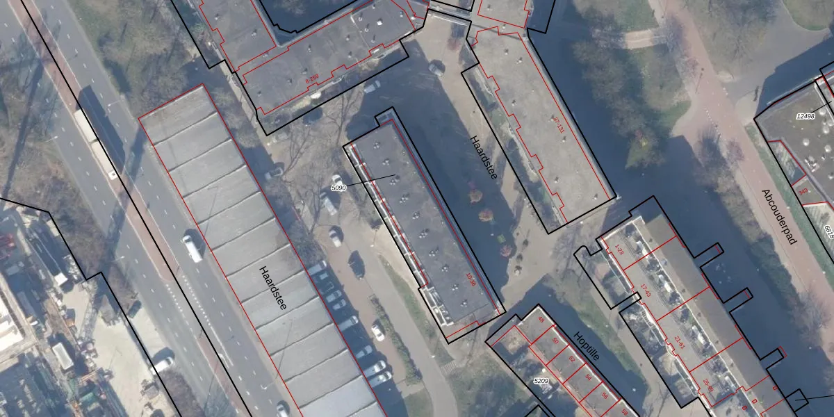 Het perceel waarop Haardstee 27 staat heeft een oppervlakte van 832 m². Dit is een groot perceel. De perceeloppervlakte wordt geregistreerd door het Kadaster. Gedetailleerde informatie over de maten van dit perceel kunt u vinden in het rapport Kadastrale kaart met maatvoering van Haardstee 27.