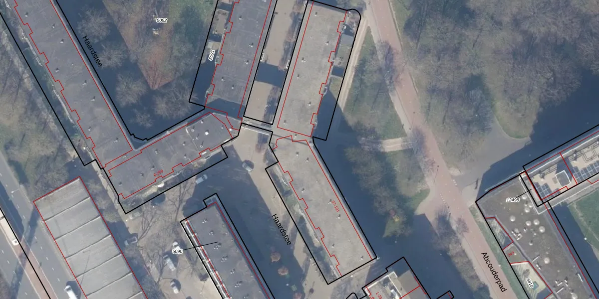 Het perceel waarop Haardstee 60 staat heeft een oppervlakte van 6292 m². Dit is een zeer groot perceel. De perceeloppervlakte wordt geregistreerd door het Kadaster. Gedetailleerde informatie over de maten van dit perceel kunt u vinden in het rapport Kadastrale kaart met maatvoering van Haardstee 60.
