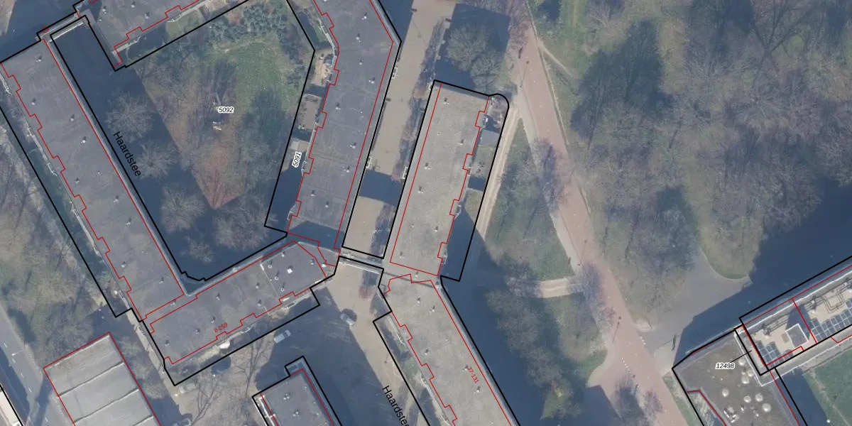 Het perceel waarop Haardstee 68 staat heeft een oppervlakte van 6292 m². Dit is een zeer groot perceel. De perceeloppervlakte wordt geregistreerd door het Kadaster. Gedetailleerde informatie over de maten van dit perceel kunt u vinden in het rapport Kadastrale kaart met maatvoering van Haardstee 68.