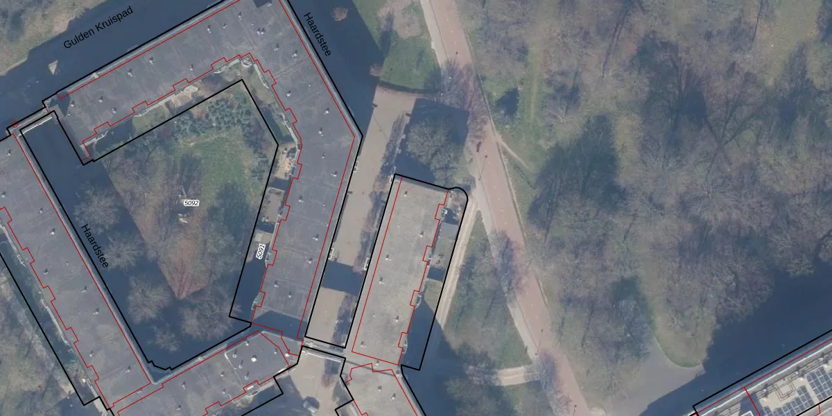 Het perceel waarop Haardstee 80 staat heeft een oppervlakte van 6292 m². Dit is een zeer groot perceel. De perceeloppervlakte wordt geregistreerd door het Kadaster. Gedetailleerde informatie over de maten van dit perceel kunt u vinden in het rapport Kadastrale kaart met maatvoering van Haardstee 80.