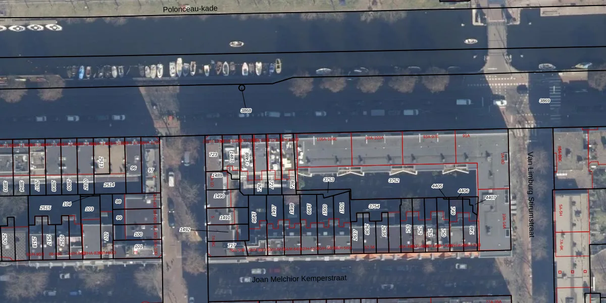 Het adres ligt op het perceel ASD21-Y-3752, dat zich in de kadastrale gemeente Amsterdam bevindt. De gemiddelde perceeloppervlakte in de kadastrale gemeente Amsterdam is 770,38 m². Dit perceel is met zijn 1695 m² dus groter dan gemiddeld. De grootste perceeloppervlakte in de kadastrale gemeente is 7,1 ha. De kleinste oppervlakte bedraagt 0 m². Er zijn 56 adressen aanwezig op het perceel. De huidige grenzen van het perceel zijn digitaal in de Basisregistratie Kadaster (BRK) geregistreerd op 29-01-2007.