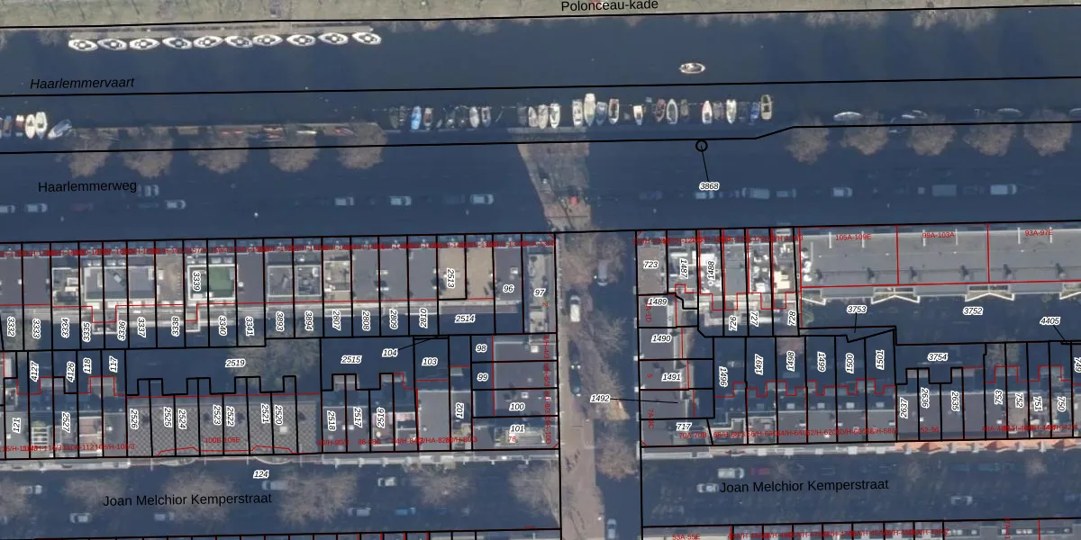 Het adres ligt op het perceel ASD21-Y-97, dat zich in de kadastrale gemeente Amsterdam bevindt. De gemiddelde perceelgrootte in Amsterdam is 770,38 m². Dit perceel is kleiner: de perceeloppervlakte bedraagt 114 m². Het kleinste perceel in de kadastrale gemeente is 0 m² groot. De grootste perceeloppervlakte is 7,1 ha. Er zijn 5 adressen aanwezig op het perceel. De laatste wijziging in het de Basisregistratie Kadaster (BRK) was op 18-01-2007.