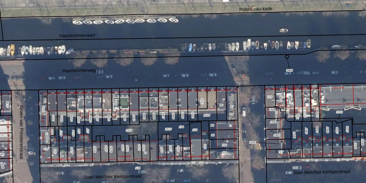Het adres is gelegen op perceel 2809 in de sectie Y en de kadastrale gemeente Amsterdam. De kadastrale aanduiding is aldus ASD21-Y-2809. Het perceel is kleiner dan gemiddeld in Amsterdam. Het perceel is 98 m² groot, terwijl het gemiddelde ligt op 769,96 m². Het grootste perceel in de kadastrale gemeente is 7,1 ha. Het kleinste perceel heeft een oppervlakte van 0 m². Op het perceel liggen in totaal 4 adressen. In de Basisregistratie Kadaster (BRK) werden de grenzen van het perceel geregistreerd op 29-01-2007.
