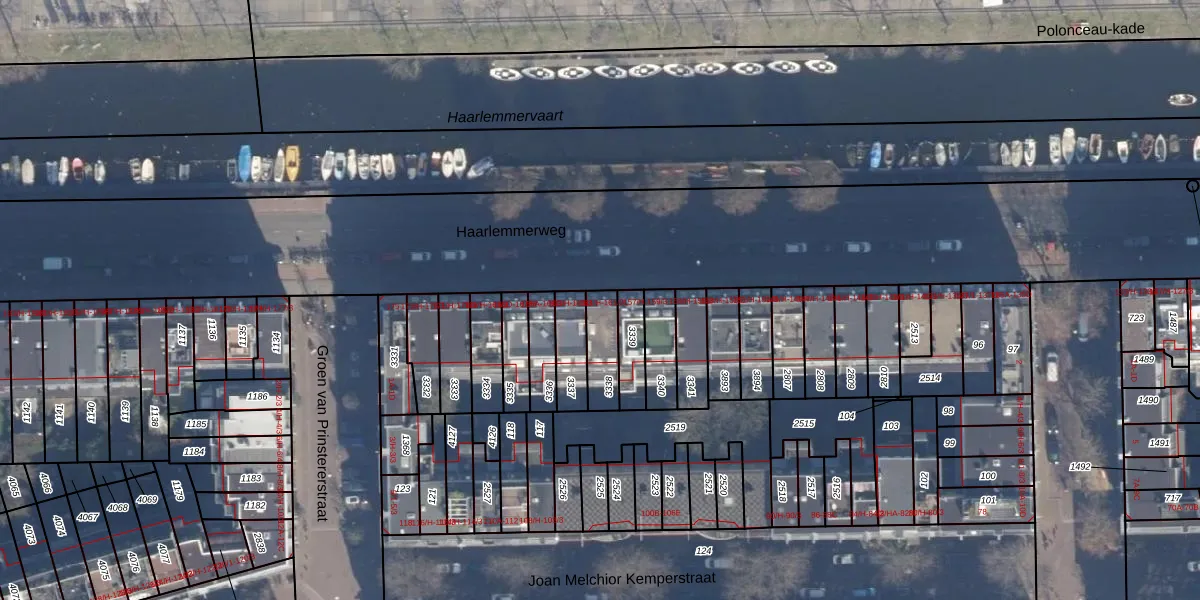 Het adres is gelegen op perceel 3338 in de sectie Y en de kadastrale gemeente Amsterdam. De kadastrale aanduiding is aldus ASD21-Y-3338. Het perceel is kleiner dan gemiddeld in Amsterdam. Het perceel is 104 m² groot, terwijl het gemiddelde ligt op 769,96 m². Het grootste perceel in de kadastrale gemeente is 7,1 ha. Het kleinste perceel heeft een oppervlakte van 0 m². Op het perceel liggen in totaal 4 adressen. De huidige grenzen van het perceel zijn digitaal in de Basisregistratie Kadaster (BRK) geregistreerd op 19-11-2019.
