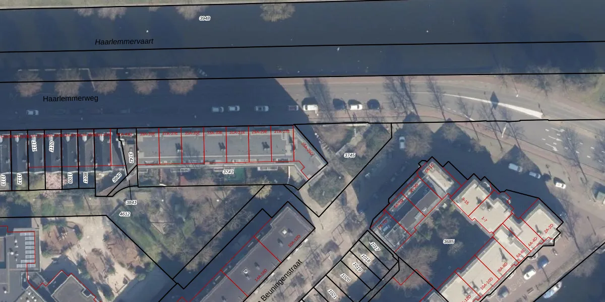 Haarlemmerweg 25-B is gelegen op kadastraal perceel ASD21Y3741. Deze kadastrale aanduiding is uniek en wordt gebruikt door het Kadaster om eigendomsrechten en andere zakelijke rechten vast te leggen. Het perceel maakt onderdeel uit van de kadastrale gemeente Amsterdam.