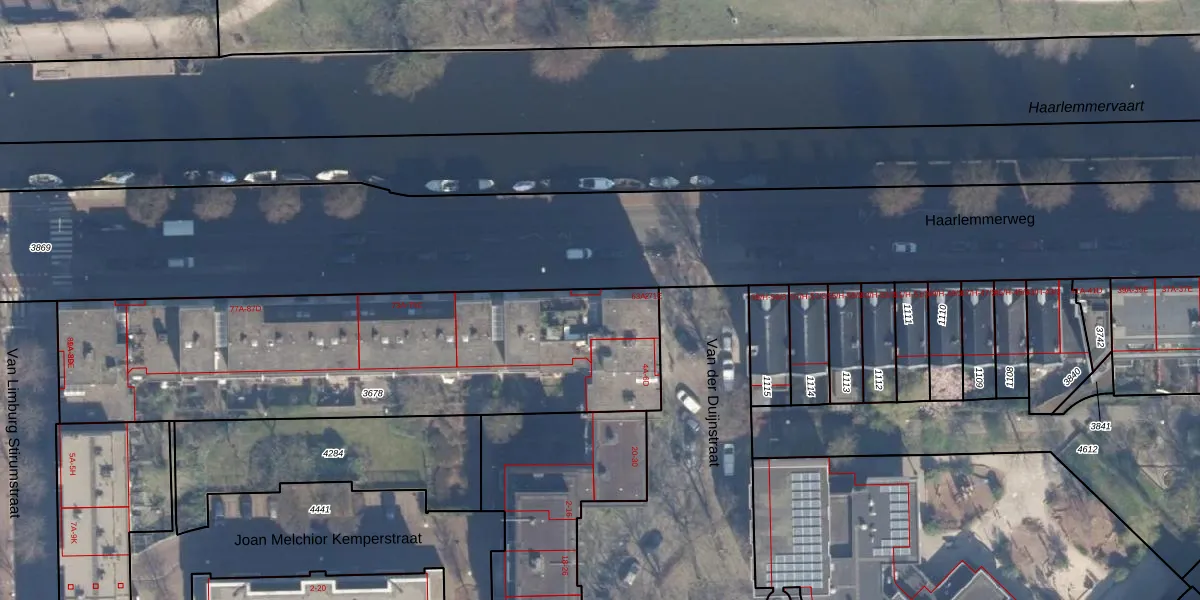 Het adres is gelegen op perceel 3678 in de sectie Y en de kadastrale gemeente Amsterdam. De kadastrale aanduiding is aldus ASD21-Y-3678. De gemiddelde perceeloppervlakte in de kadastrale gemeente Amsterdam is 769,96 m². Dit perceel is met zijn 2056 m² dus groter dan gemiddeld. Het kleinste perceel in de kadastrale gemeente is 0 m² groot. De grootste perceeloppervlakte is 7,1 ha. Op het perceel zijn 69 adressen aanwezig. In de Basisregistratie Kadaster (BRK) werden de grenzen van het perceel geregistreerd op 17-05-2010.