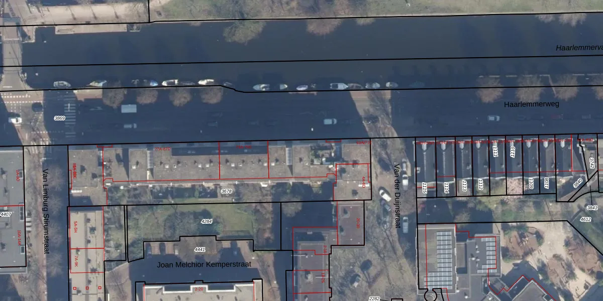 Het adres is gelegen op perceel 3678 in de sectie Y en de kadastrale gemeente Amsterdam. De kadastrale aanduiding is aldus ASD21-Y-3678. De gemiddelde perceeloppervlakte in de kadastrale gemeente Amsterdam is 769,96 m². Dit perceel is met zijn 2056 m² dus groter dan gemiddeld. Het kleinste perceel in de kadastrale gemeente is 0 m² groot. De grootste perceeloppervlakte is 7,1 ha. Op het perceel zijn 69 adressen aanwezig. De huidige grenzen van het perceel zijn digitaal in de Basisregistratie Kadaster (BRK) geregistreerd op 17-05-2010.