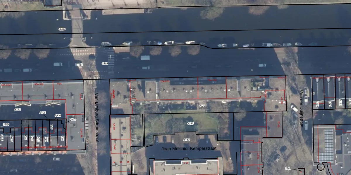 Het adres is gelegen op perceel 3678 in de sectie Y en de kadastrale gemeente Amsterdam. De kadastrale aanduiding is aldus ASD21-Y-3678. De gemiddelde perceeloppervlakte in de kadastrale gemeente Amsterdam is 769,96 m². Dit perceel is met zijn 2056 m² dus groter dan gemiddeld. Het kleinste perceel in de kadastrale gemeente is 0 m² groot. De grootste perceeloppervlakte is 7,1 ha. Er zijn 69 adressen aanwezig op het perceel. De huidige grenzen van het perceel zijn digitaal in de Basisregistratie Kadaster (BRK) geregistreerd op 17-05-2010.