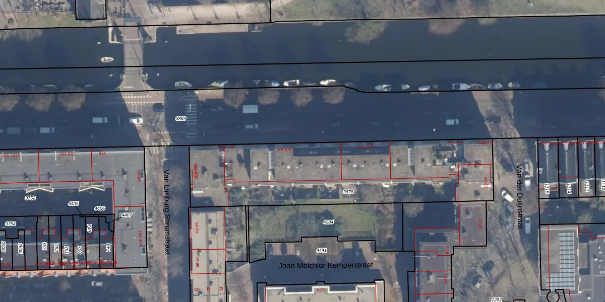 Het adres is gelegen op perceel 3678 in de sectie Y en de kadastrale gemeente Amsterdam. De kadastrale aanduiding is aldus ASD21-Y-3678. De gemiddelde perceeloppervlakte in de kadastrale gemeente Amsterdam is 769,96 m². Dit perceel is met zijn 2056 m² dus groter dan gemiddeld. Het kleinste perceel in de kadastrale gemeente is 0 m² groot. De grootste perceeloppervlakte is 7,1 ha. Er zijn 69 adressen aanwezig op het perceel. De laatste wijziging in het de Basisregistratie Kadaster (BRK) was op 17-05-2010.