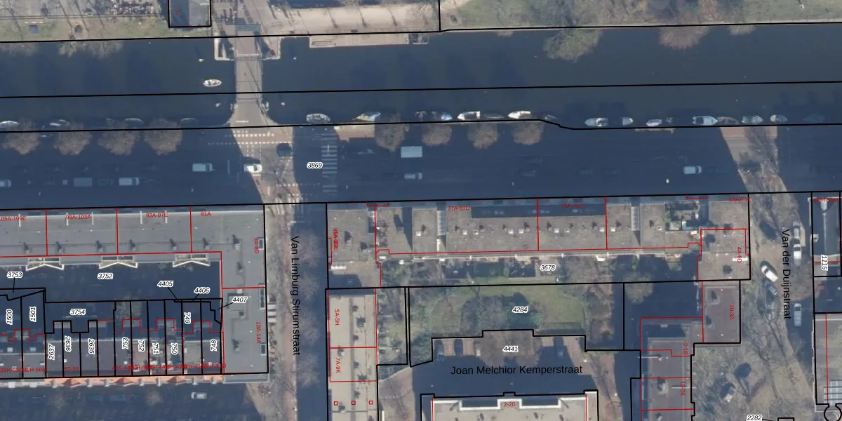 Het adres is gelegen op perceel 3678 in de sectie Y en de kadastrale gemeente Amsterdam. De kadastrale aanduiding is aldus ASD21-Y-3678. De gemiddelde perceeloppervlakte in de kadastrale gemeente Amsterdam is 769,96 m². Dit perceel is met zijn 2056 m² dus groter dan gemiddeld. De grootste perceeloppervlakte in de kadastrale gemeente is 7,1 ha. De kleinste oppervlakte bedraagt 0 m². Op het perceel zijn 69 adressen aanwezig. De huidige grenzen van het perceel zijn digitaal in de Basisregistratie Kadaster (BRK) geregistreerd op 17-05-2010.