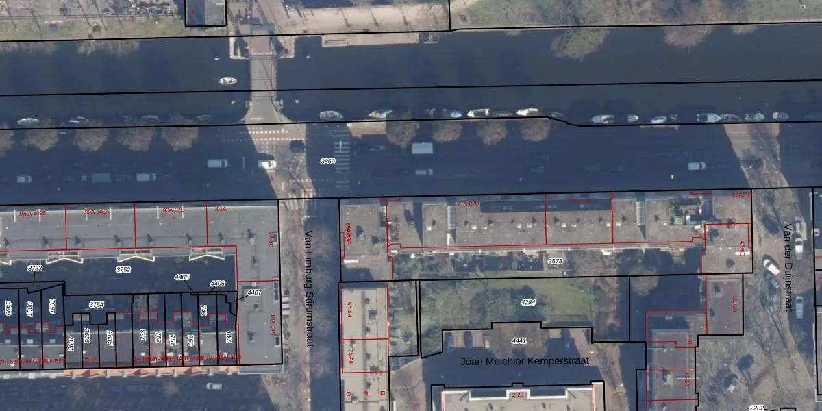 Het adres is gelegen op perceel 3678 in de sectie Y en de kadastrale gemeente Amsterdam. De kadastrale aanduiding is aldus ASD21-Y-3678. De gemiddelde perceeloppervlakte in de kadastrale gemeente Amsterdam is 769,96 m². Dit perceel is met zijn 2056 m² dus groter dan gemiddeld. De grootste perceeloppervlakte in de kadastrale gemeente is 7,1 ha. De kleinste oppervlakte bedraagt 0 m². Op het perceel zijn 69 adressen aanwezig. De laatste wijziging in het de Basisregistratie Kadaster (BRK) was op 17-05-2010.