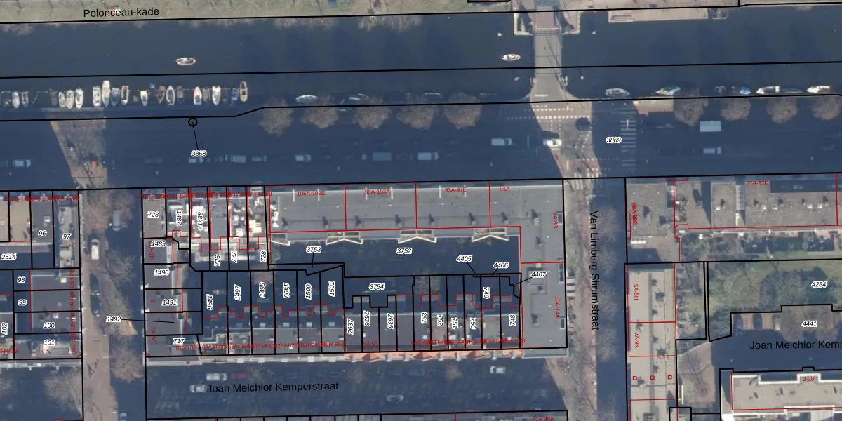 Het adres ligt op het perceel ASD21-Y-3752, dat zich in de kadastrale gemeente Amsterdam bevindt. De oppervlakte van het perceel is 1695 m². Dat is groter dan gemiddeld in Amsterdam, waar de gemiddelde perceeloppervlakte op 769,96 m² ligt. Het kleinste perceel in de kadastrale gemeente is 0 m² groot. De grootste perceeloppervlakte is 7,1 ha. Op het perceel liggen in totaal 56 adressen. De laatste wijziging in het de Basisregistratie Kadaster (BRK) was op 29-01-2007.