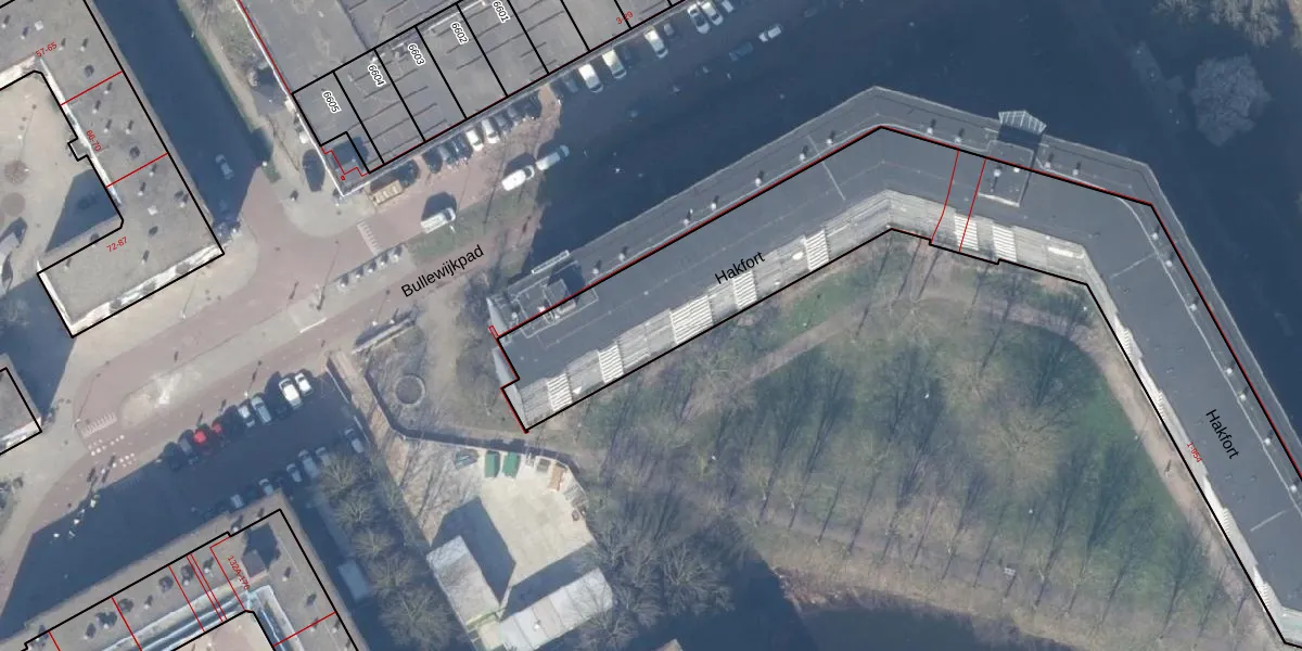Het perceel waarop Hakfort 104 staat heeft een oppervlakte van 6365 m². Dit is een zeer groot perceel. De perceeloppervlakte wordt geregistreerd door het Kadaster. Gedetailleerde informatie over de maten van dit perceel kunt u vinden in het rapport Kadastrale kaart met maatvoering van Hakfort 104.