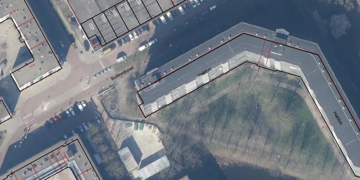 Het perceel waarop Hakfort 106 staat heeft een oppervlakte van 6365 m². Dit is een zeer groot perceel. De perceeloppervlakte wordt geregistreerd door het Kadaster. Gedetailleerde informatie over de maten van dit perceel kunt u vinden in het rapport Kadastrale kaart met maatvoering van Hakfort 106.
