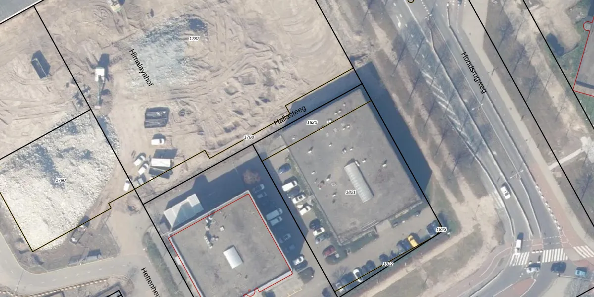 Het perceel waarop Hallasteeg 5-E staat heeft een oppervlakte van 2120 m². Dit is een zeer groot perceel. De perceeloppervlakte wordt geregistreerd door het Kadaster. Gedetailleerde informatie over de maten van dit perceel kunt u vinden in het rapport Kadastrale kaart met maatvoering van Hallasteeg 5-E.