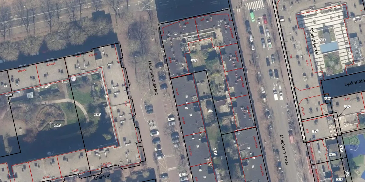 Halmaheirastraat 7-F is gelegen op kadastraal perceel ASD19W7455. Deze kadastrale aanduiding is uniek en wordt gebruikt door het Kadaster om eigendomsrechten en andere zakelijke rechten vast te leggen. Het perceel maakt onderdeel uit van de kadastrale gemeente Amsterdam.
