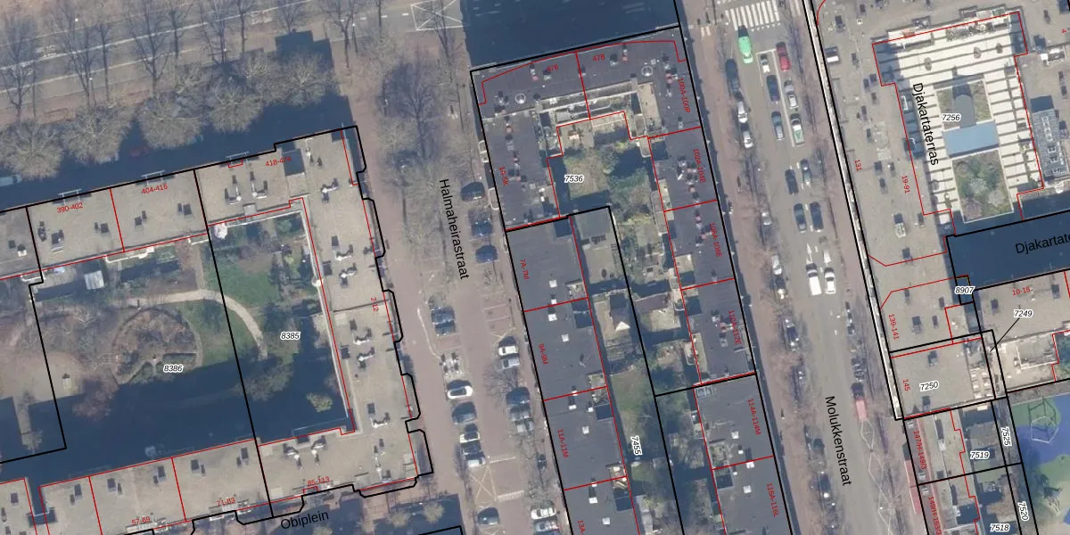 Halmaheirastraat 7-G is gelegen op kadastraal perceel ASD19W7455. Deze kadastrale aanduiding is uniek en wordt gebruikt door het Kadaster om eigendomsrechten en andere zakelijke rechten vast te leggen. Het perceel maakt onderdeel uit van de kadastrale gemeente Amsterdam.