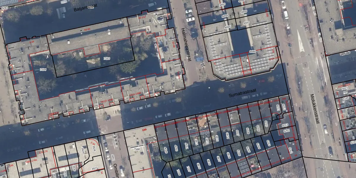 Halmaheirastraat 84 is gelegen op kadastraal perceel ASD19W7594. Deze kadastrale aanduiding is uniek en wordt gebruikt door het Kadaster om eigendomsrechten en andere zakelijke rechten vast te leggen. Het perceel maakt onderdeel uit van de kadastrale gemeente Amsterdam.