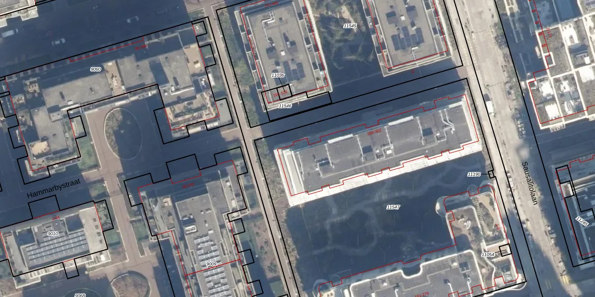 Het perceel waarop Hammarbystraat 174 staat heeft een oppervlakte van 5295 m². Dit is een zeer groot perceel. De perceeloppervlakte wordt geregistreerd door het Kadaster. Gedetailleerde informatie over de maten van dit perceel kunt u vinden in het rapport Kadastrale kaart met maatvoering van Hammarbystraat 174.