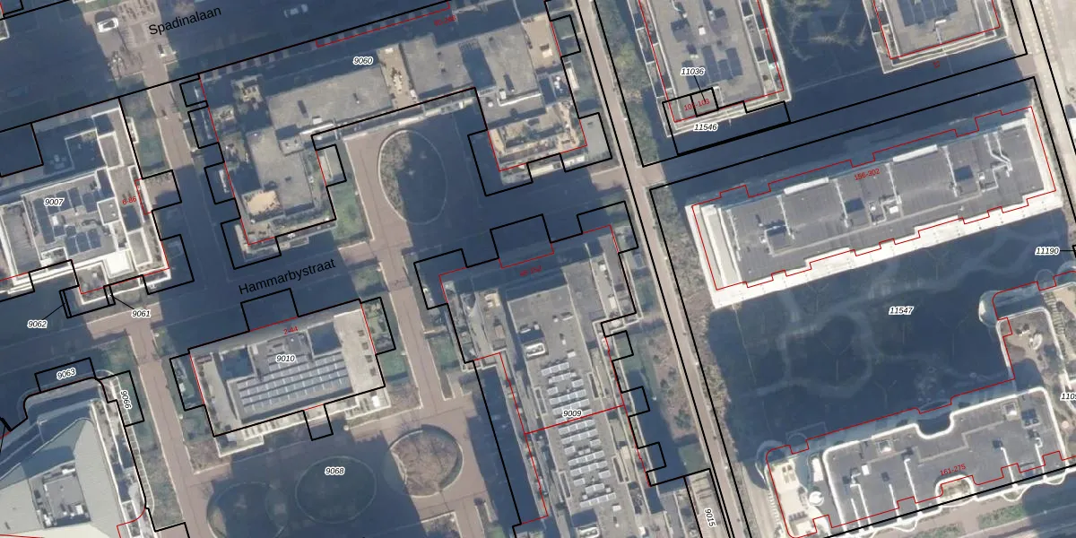Het perceel waarop Hammarbystraat 92 staat heeft een oppervlakte van 2165 m². Dit is een zeer groot perceel. De perceeloppervlakte wordt geregistreerd door het Kadaster. Gedetailleerde informatie over de maten van dit perceel kunt u vinden in het rapport Kadastrale kaart met maatvoering van Hammarbystraat 92.