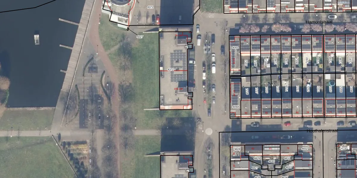 Hamontstraat 110 is gelegen op kadastraal perceel STN02E4372. Deze kadastrale aanduiding is uniek en wordt gebruikt door het Kadaster om eigendomsrechten en andere zakelijke rechten vast te leggen. Het perceel maakt onderdeel uit van de kadastrale gemeente Sloten Noord-Holland.