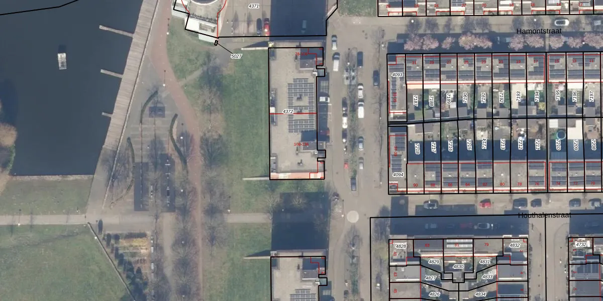 Hamontstraat 114 is gelegen op kadastraal perceel STN02E4372. Deze kadastrale aanduiding is uniek en wordt gebruikt door het Kadaster om eigendomsrechten en andere zakelijke rechten vast te leggen. Het perceel maakt onderdeel uit van de kadastrale gemeente Sloten Noord-Holland.